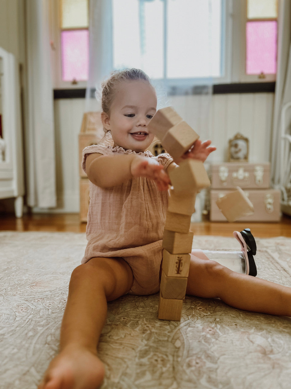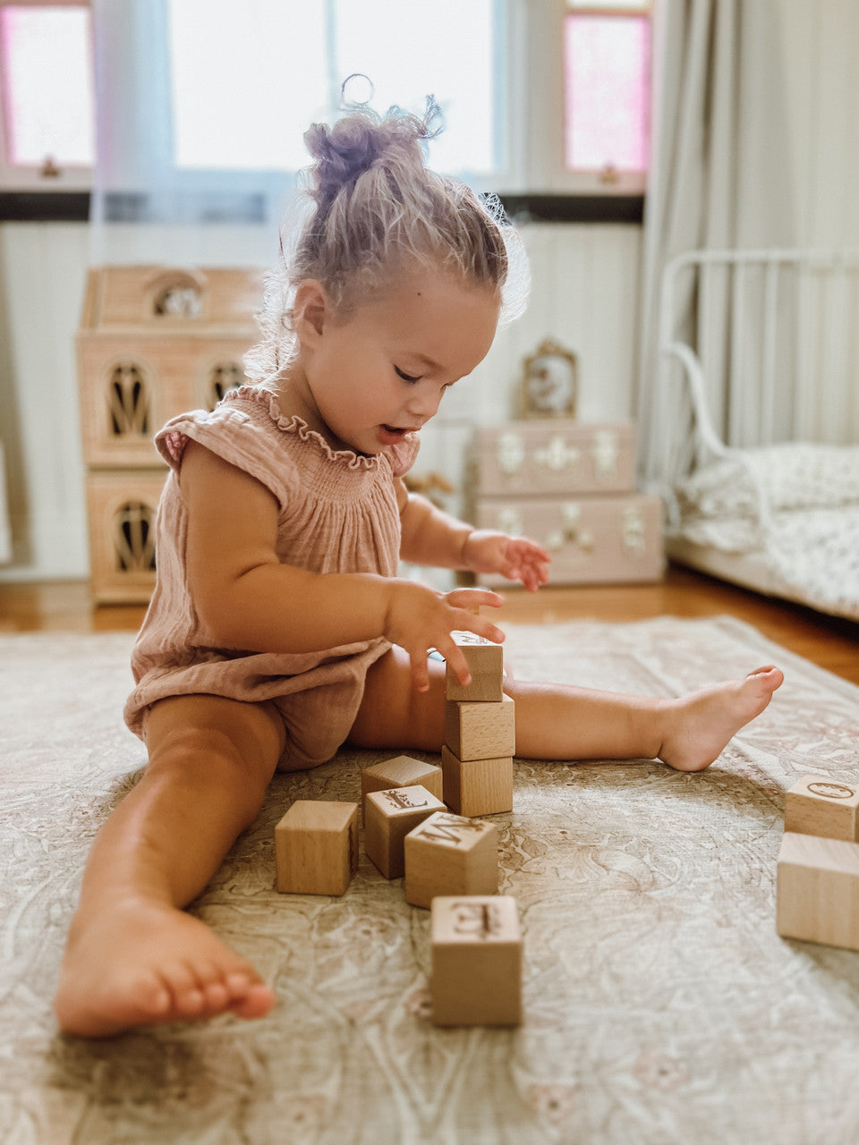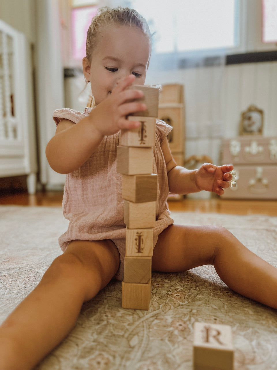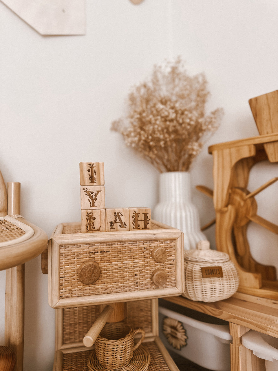 Pure and natural! Our engraved Wooden Letter Blocks are paint and toxin free. Each block is made from sustainably grown pine. Measuring 4cm cubed our letter blocks are designed for your child's hands, sanded soft with rounded edges and corners. Free from paints and chemicals, each block is engraved leaving you with 100% natural, raw wooden blocks.